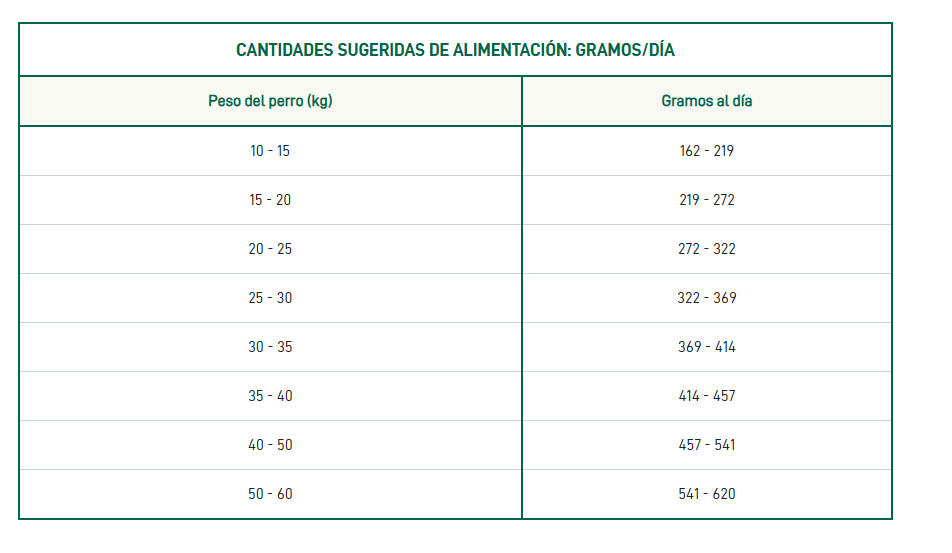 Ingredientes: salmón fresco 30%, arroz, salmón deshidratado 15%, proteína de arroz, grasa animal, salmón hidrolizado 3%, pulpa de remolacha 2,5%, semillas de lino, levadura de cerveza 1%, sustancias minerales, aceite de pescado, inulina 1.000 mg/kg (fuente de fructooligosacáridos), jengibre 0,1%, mananoligosacáridos 1.000 mg/kg, Yuca de Mojave 170 mg/kg.